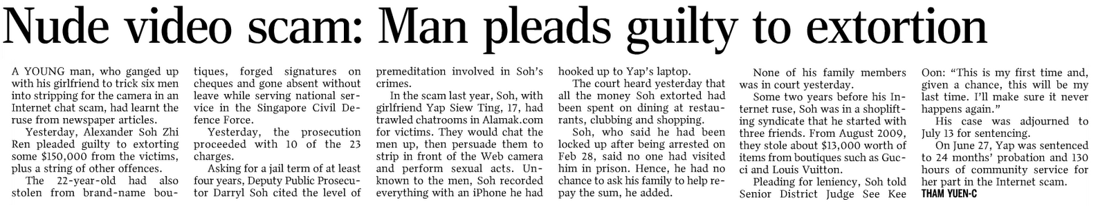 Nude video scam: Man pleads guilty to extortion